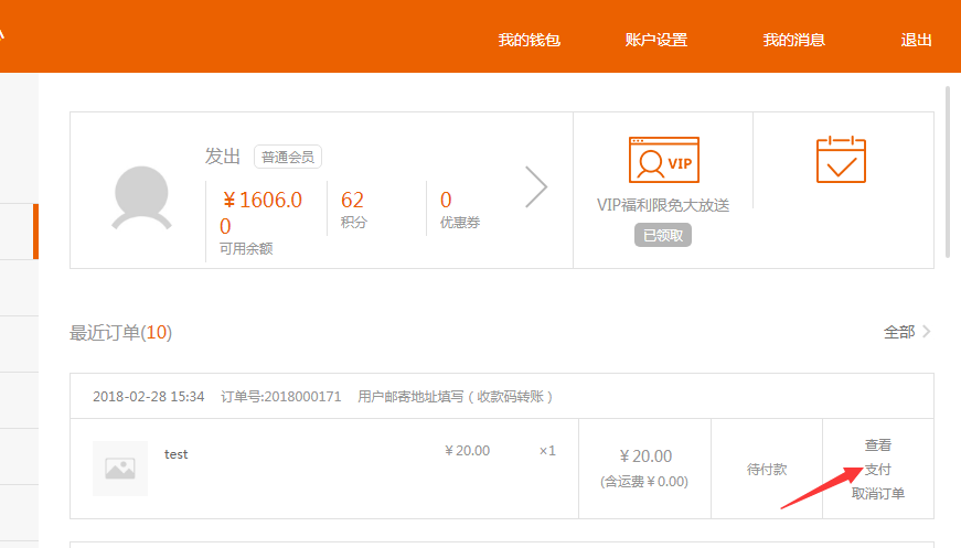 银行转账:提供收款的银行账号的相关信息,会出现在用户提交订单之后的页面